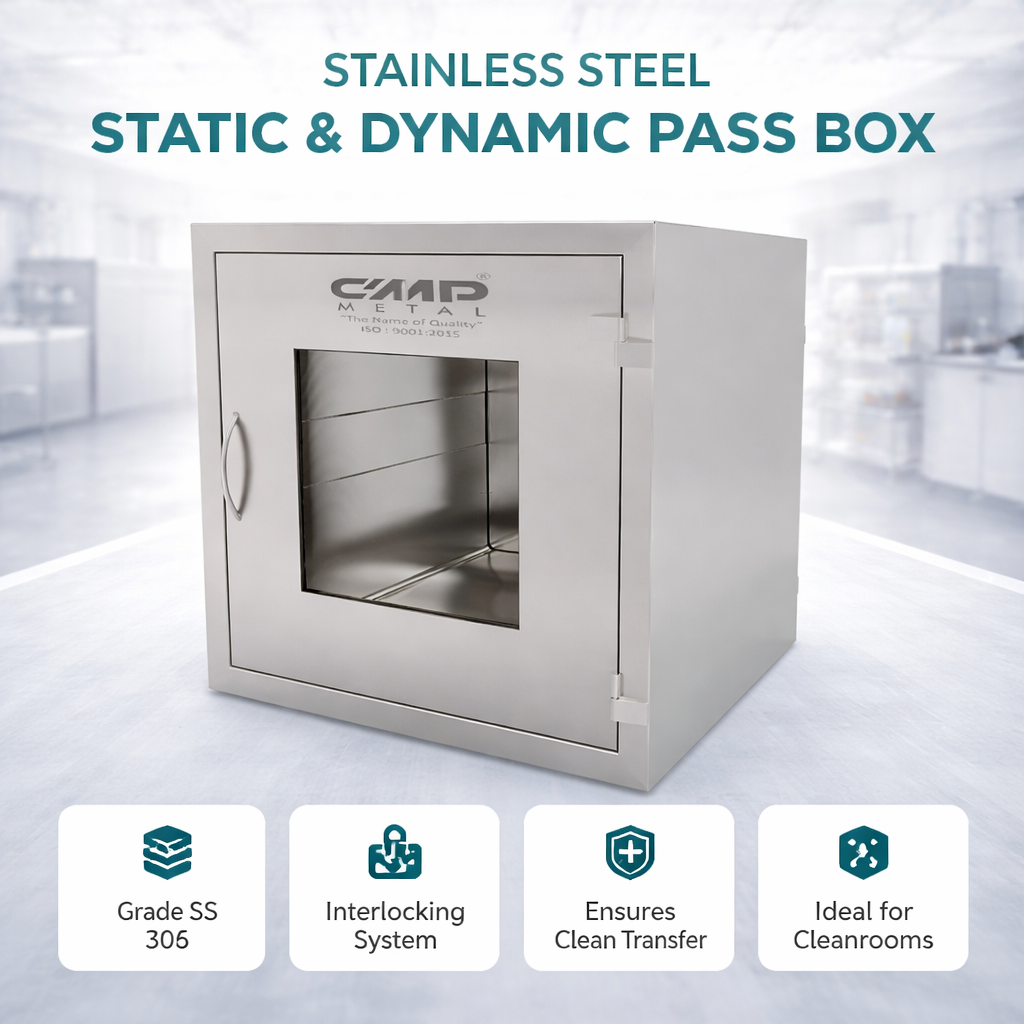 A pass box is used in cleanrooms to transfer materials between two areas without allowing contaminants to enter the controlled environment. It helps maintain hygiene and prevents cross contamination in pharmaceutical, hospital, and laboratory facilities.